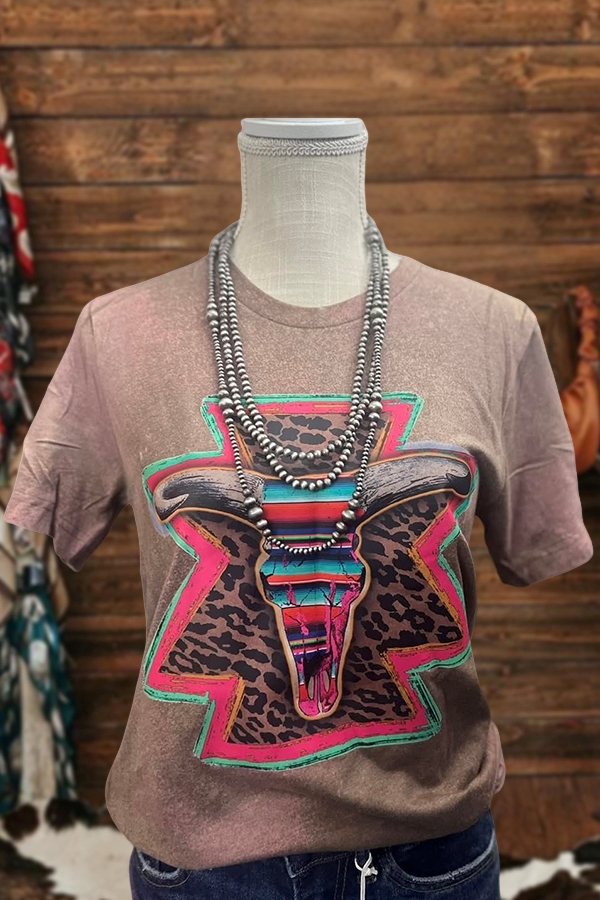 Western Aztec Ethnic Washed Dolman Sleeve T-shirt