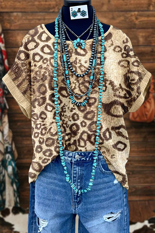 Chic Leopard Washed Dolman Sleeve T-shirt