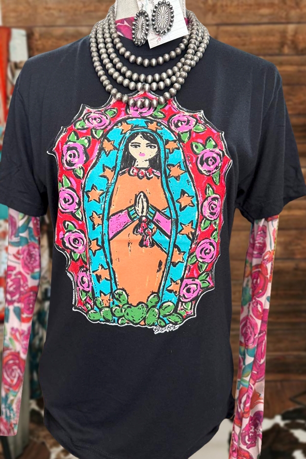 Our Lady Of Guadalupe Flower Print T-Shirt