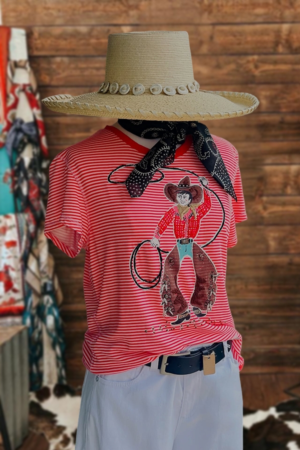 Casual USA Bow Cherry Print Fly Sleeve T-shirt