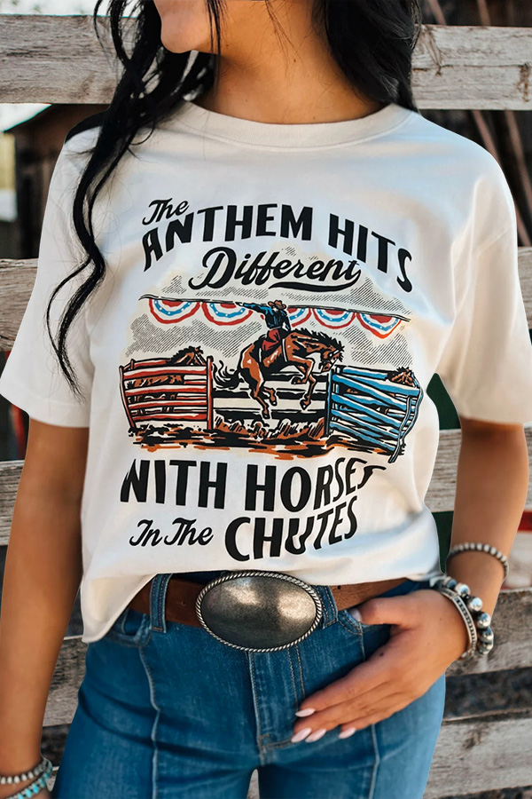 Classic USA Patchwork Print Textured Bat Sleeve T-Shirt