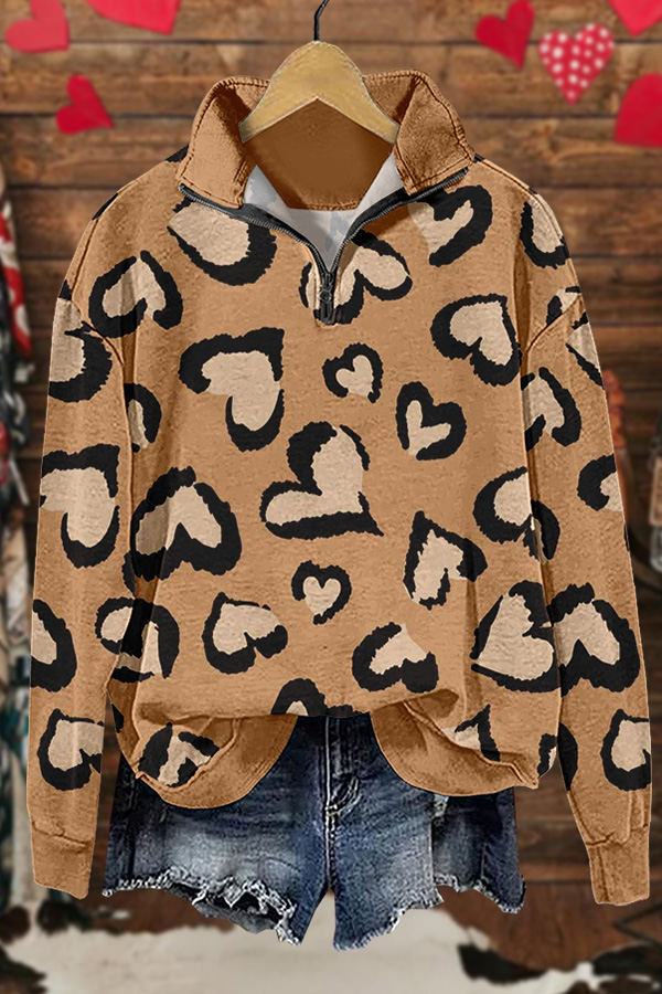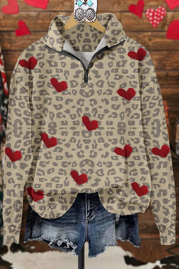 Sweet Valentine's Day Heart Zipper Sweatshirt
