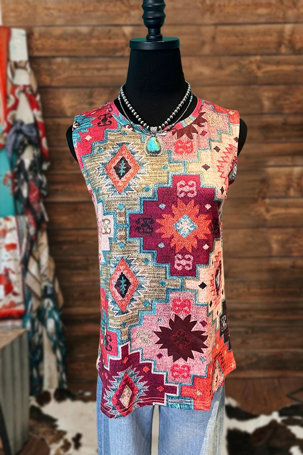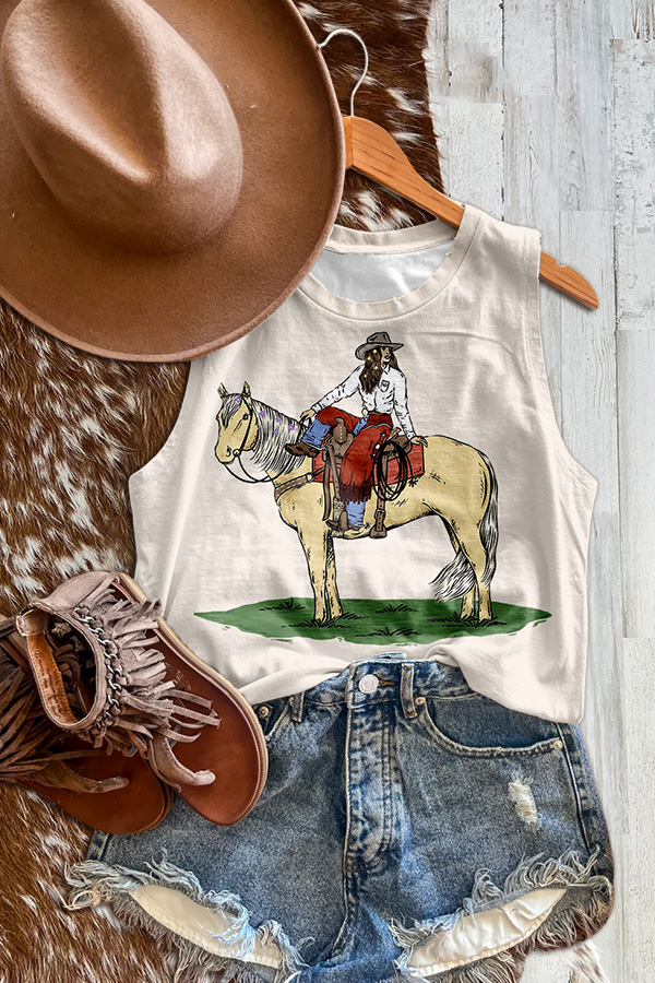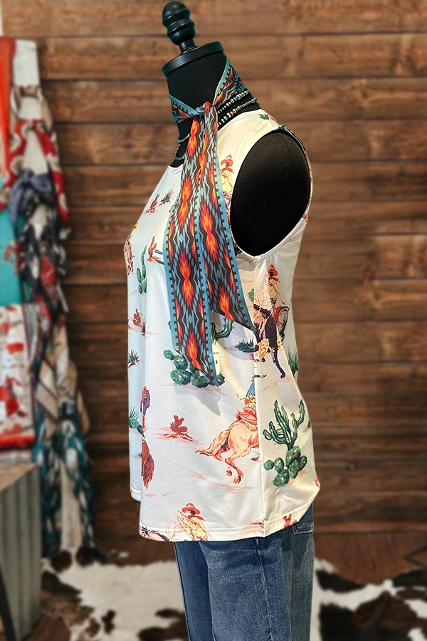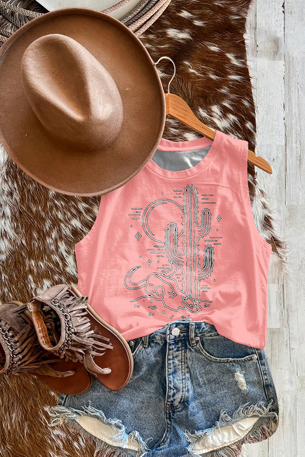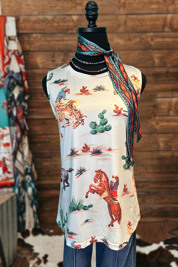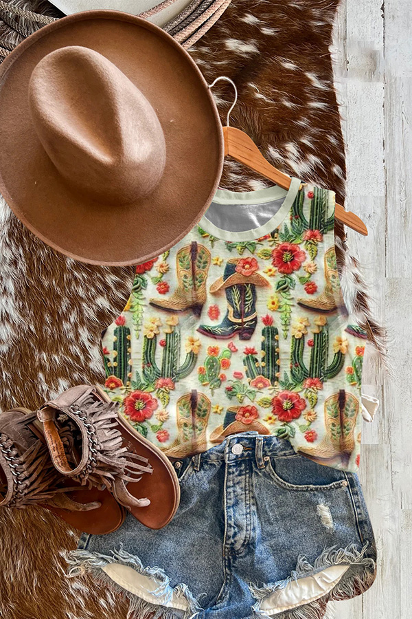 Vintage Western Cactus Boots Print Tank