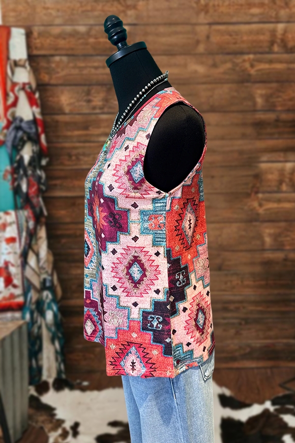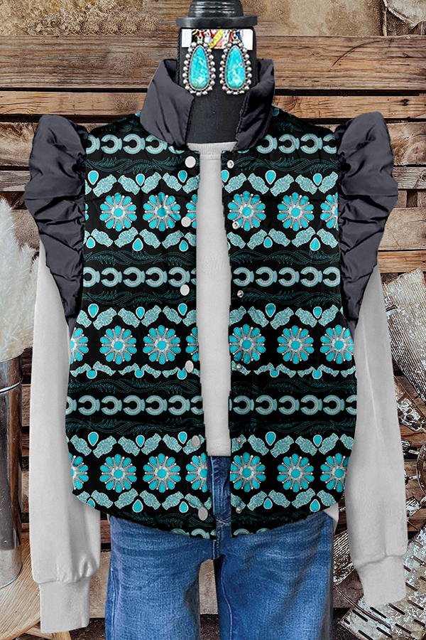 Vintage Western Turquoise Print Ruffle Sleeve Vest