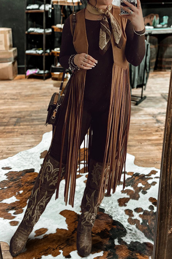 Vintage Western Boot-stitched Print Ruffle Sleeve Vest