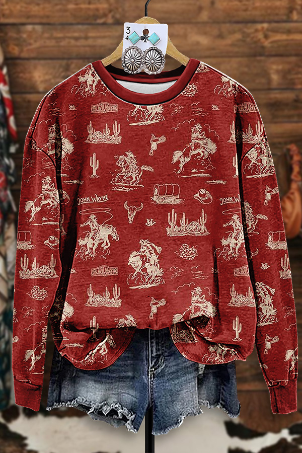 Retro Western Cowboy Print Wide Leg Pants