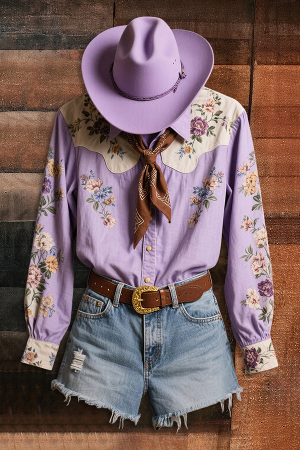 Western Ranch Floral Polka Dot Layered Ruffle Sleeve Top
