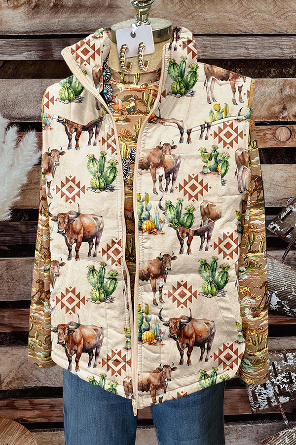 Western Boot Stitch Print Zip-Up Sweatshirt