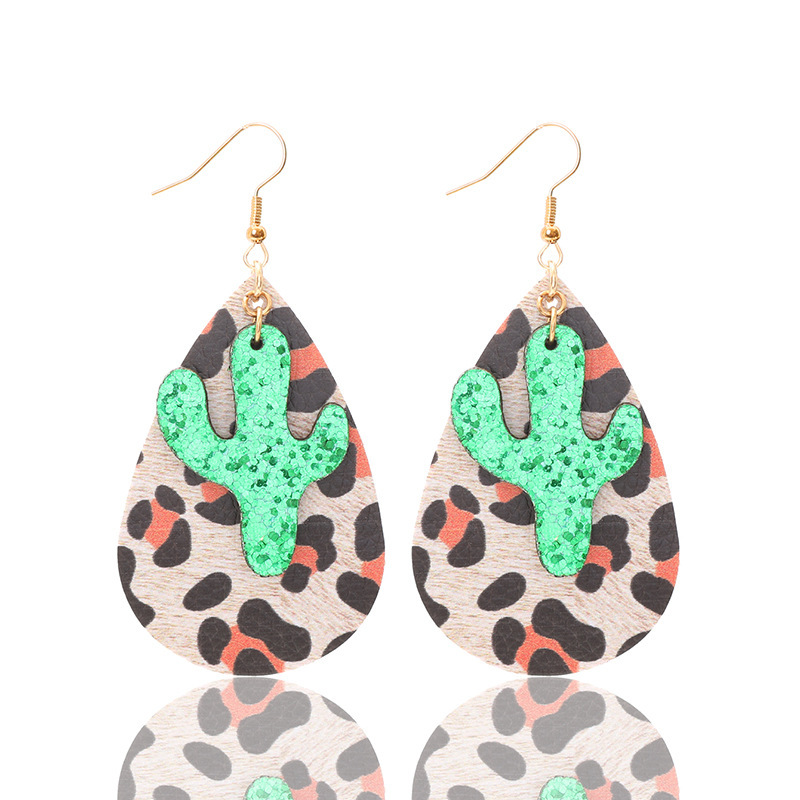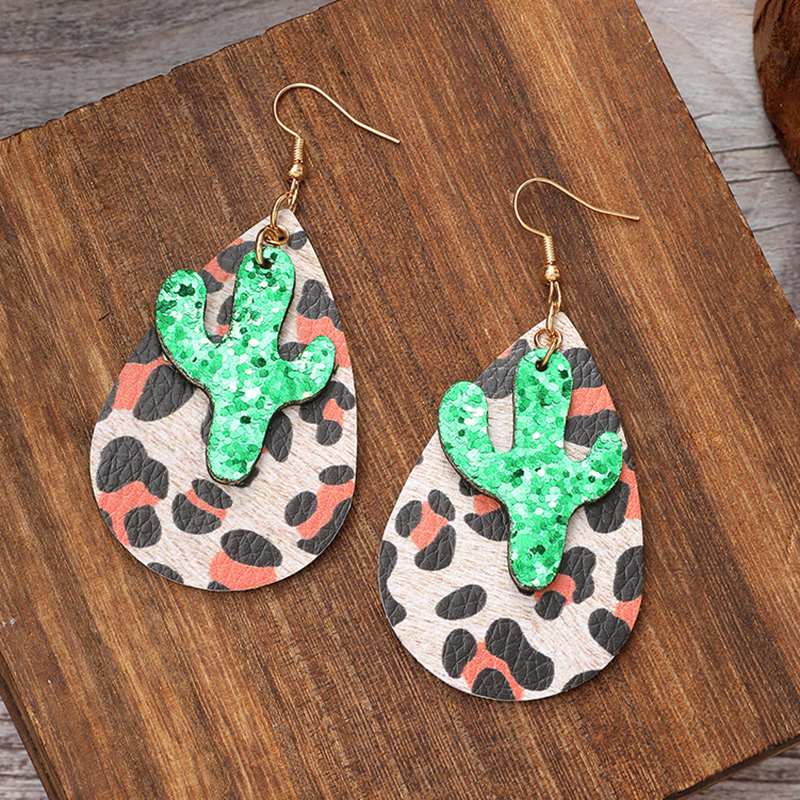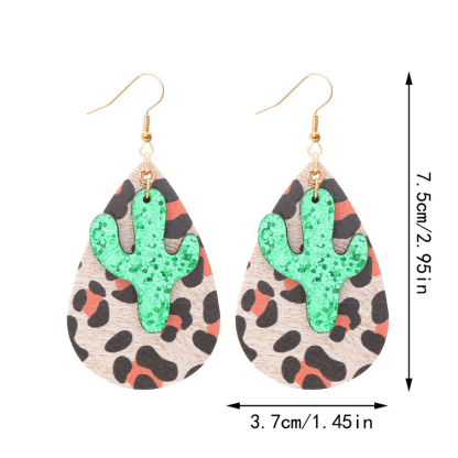 Vintage Leopard Print Cactus Drop Leather Earrings
