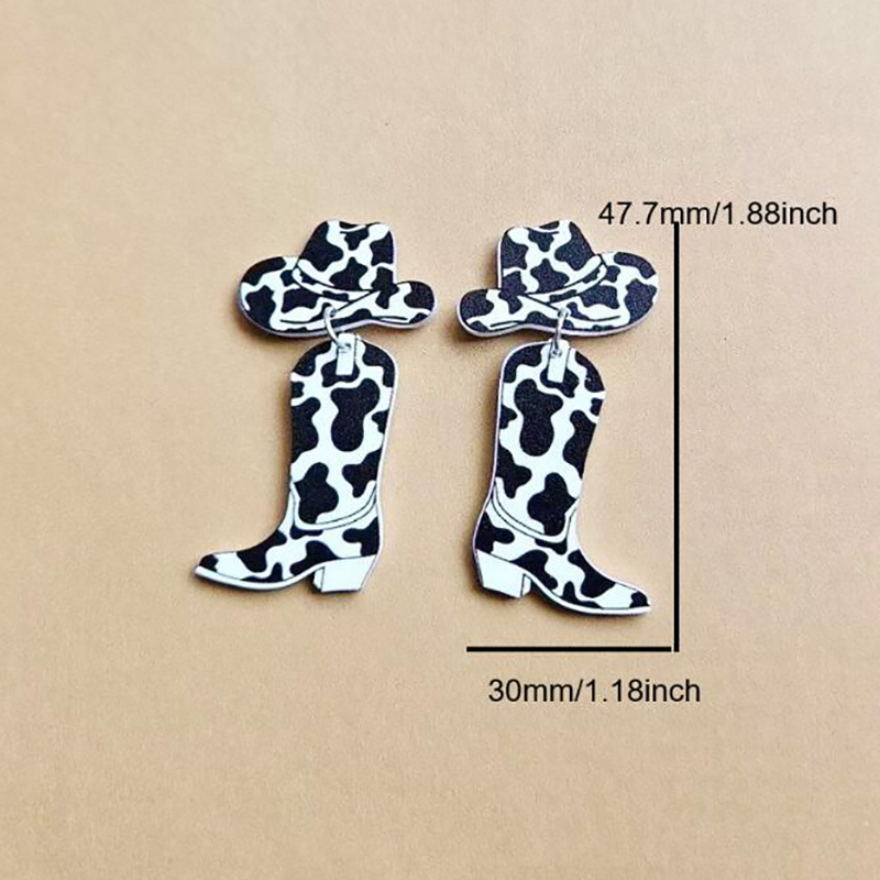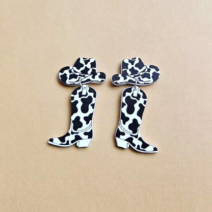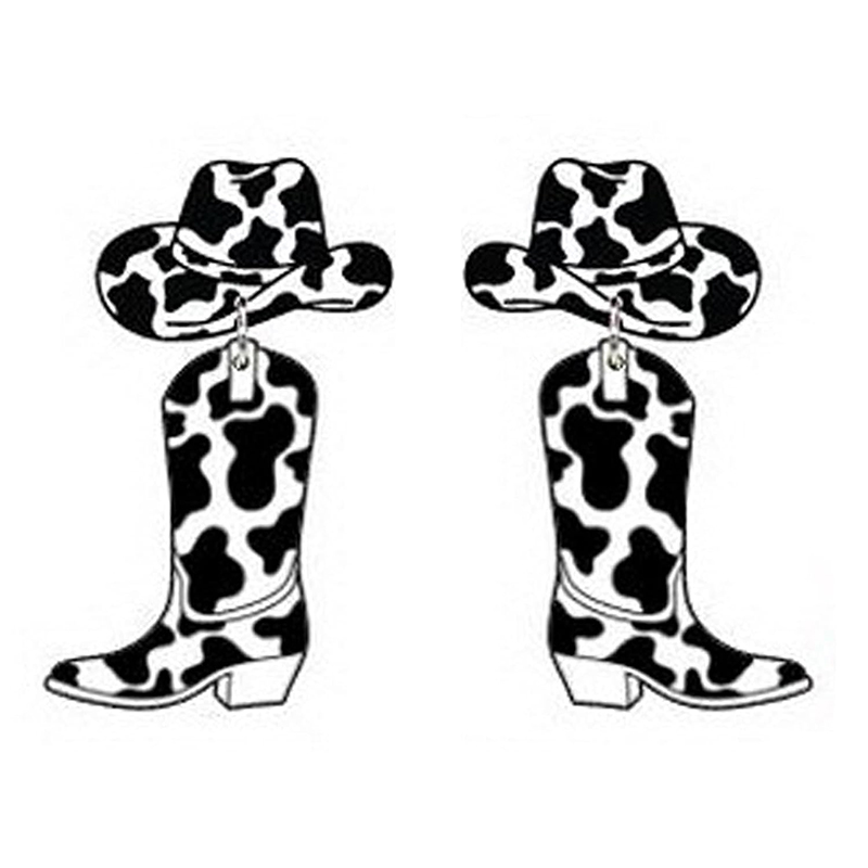 Western Cowboy Cow Pattern Hat Boots Earrings