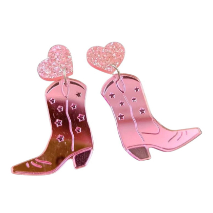 Western Cowboy Love Mirror Boots Earrings