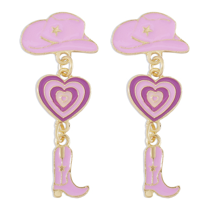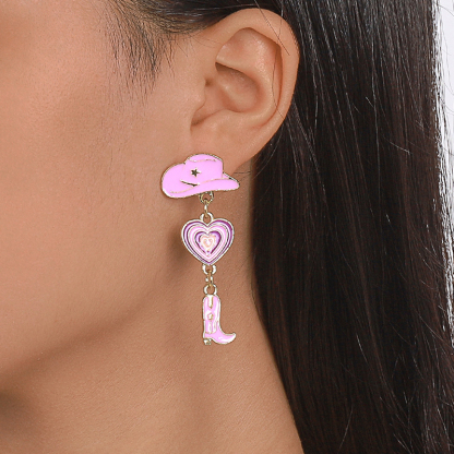 Western Cowboy Hat Boots Love Earrings