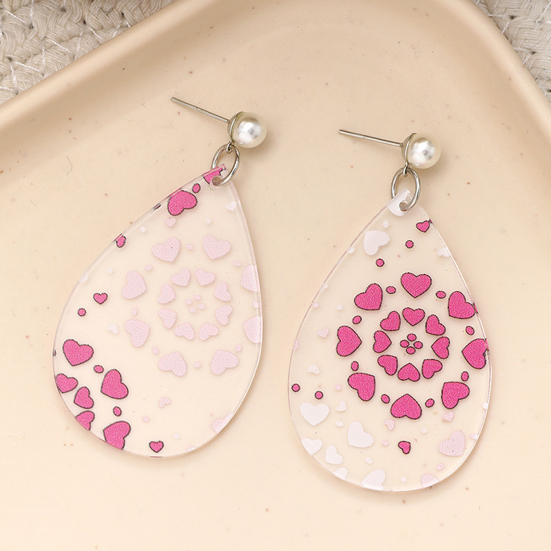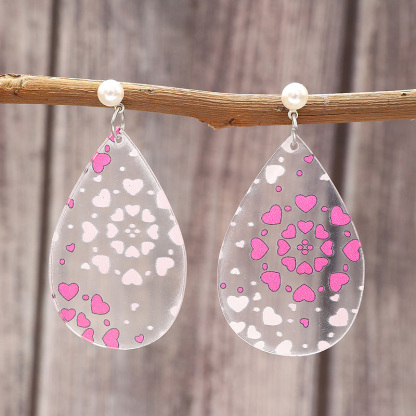 Valentine's Day Hearts Print Teardrop Earrings