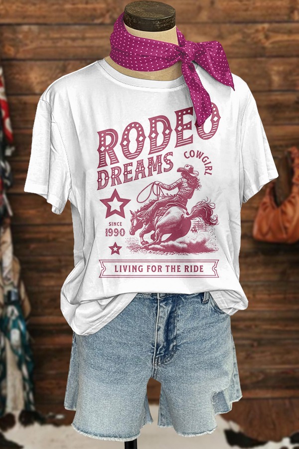 Cozy Rodeo Western Cowgirl Print T-Shirt