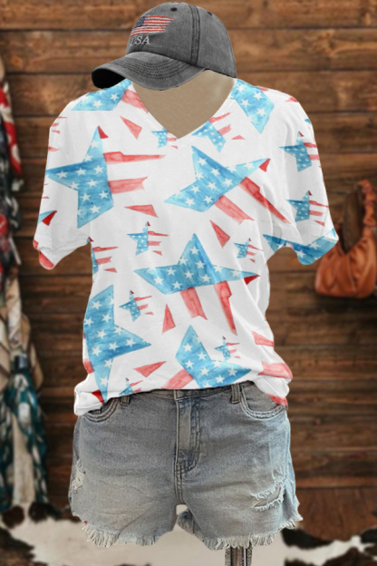 Stay on trend this season in our new stylish, v neck t-shirt. We especially love the national flag fabric and think this piece will be a new favorite in your closet!
