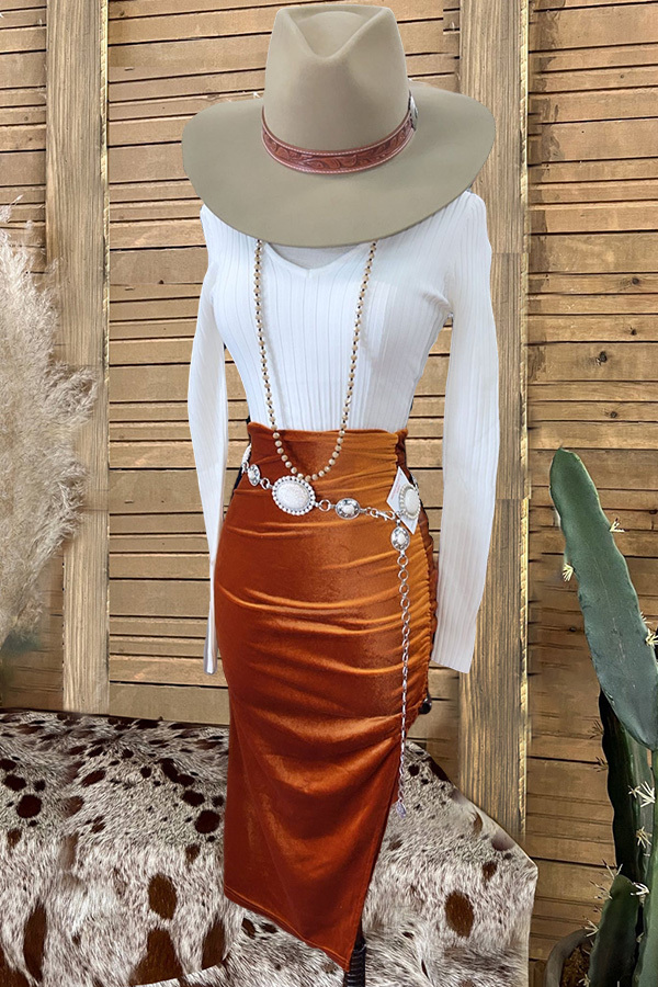 If you're looking for a western, skinny fit skirt look no further than this! Our retro will add an instant style upgrade to your closet.
