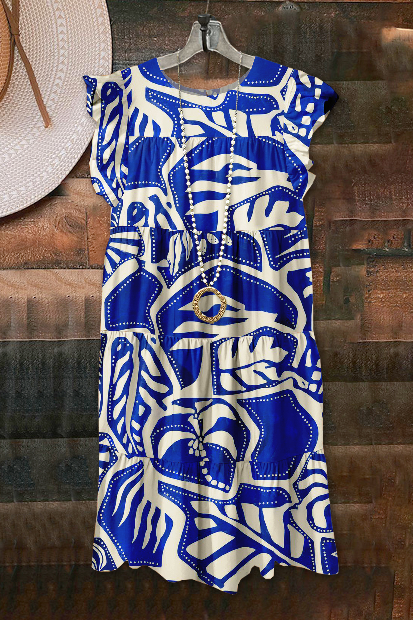 Classic Leaf Print Fly Sleeve Dress