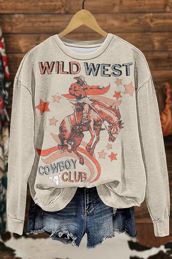 Cozy Horse Racing Cowboys Rodeo Print Sweatshirt