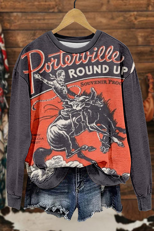 Chic Horse Racing Cowboys Rodeo Print Sweatshirt