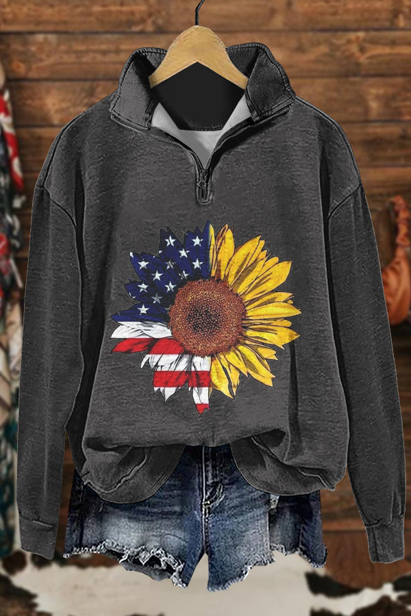 Stay on trend this season in our new chic, mandarin collar sweatshirt. We especially love the graphic print fabric and think this piece will be a new favorite in your closet!