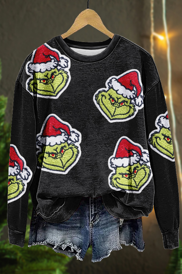 Christmas Grinch Print Sweatshirt