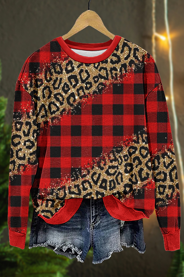 Classic Red Plaid Leopard Print Sweatshirt