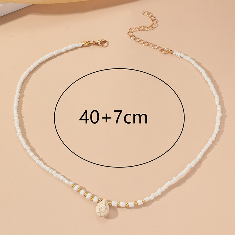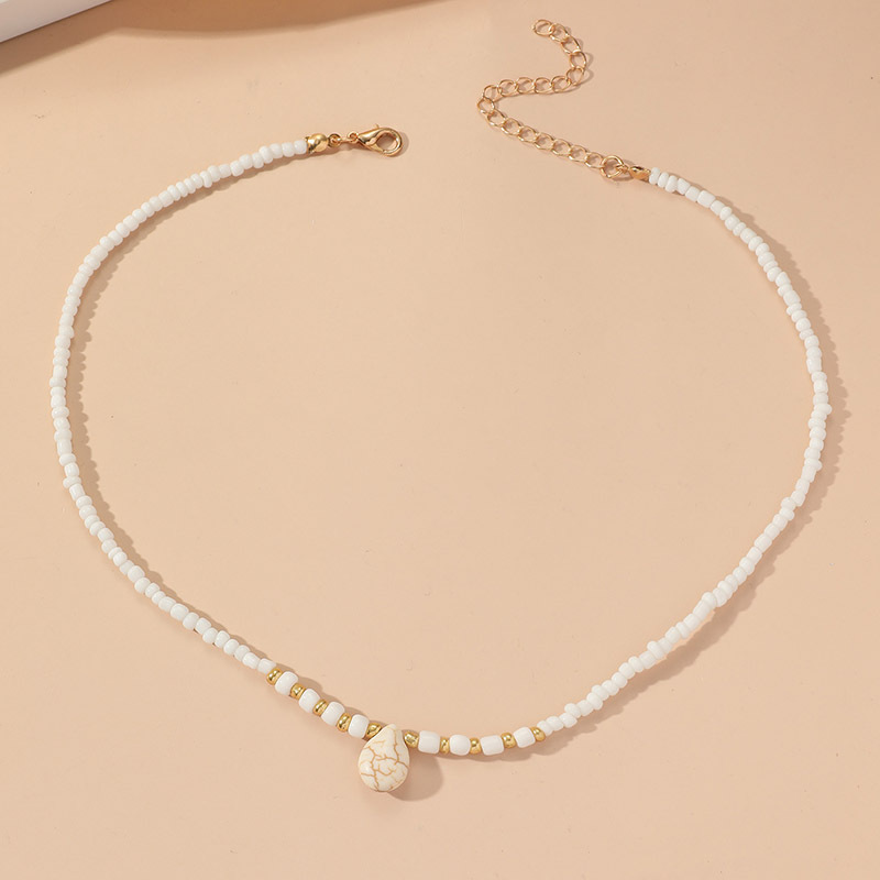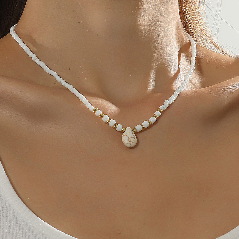Vintage Drop-shaped White Turquoise Pendant Beaded Necklace