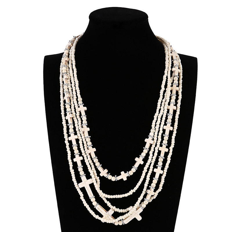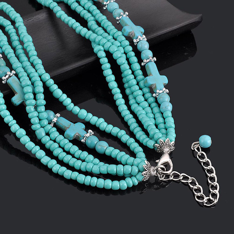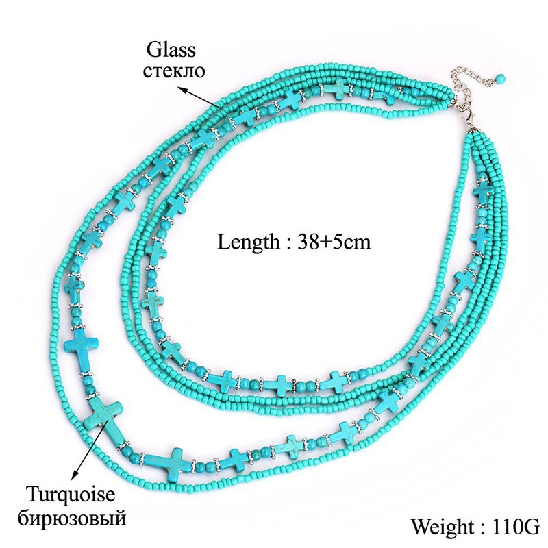 Vintage Turquoise Rice Beaded Multi-layer Cross Necklace