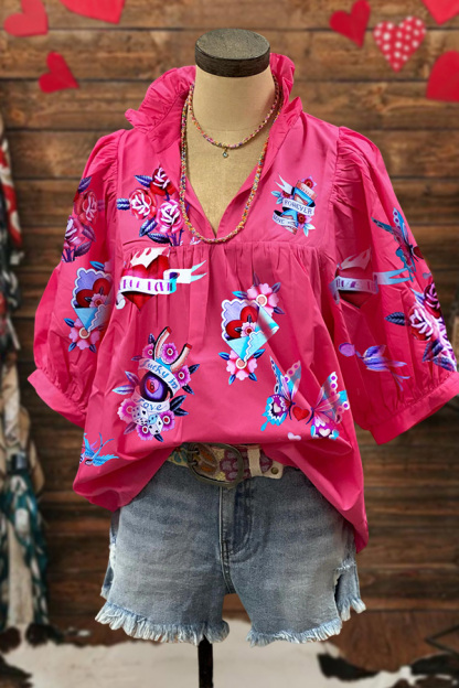 Stay on trend this season in our new romantic, v neck blouse. We especially love the floral print fabric and think this piece will be a new favorite in your closet!