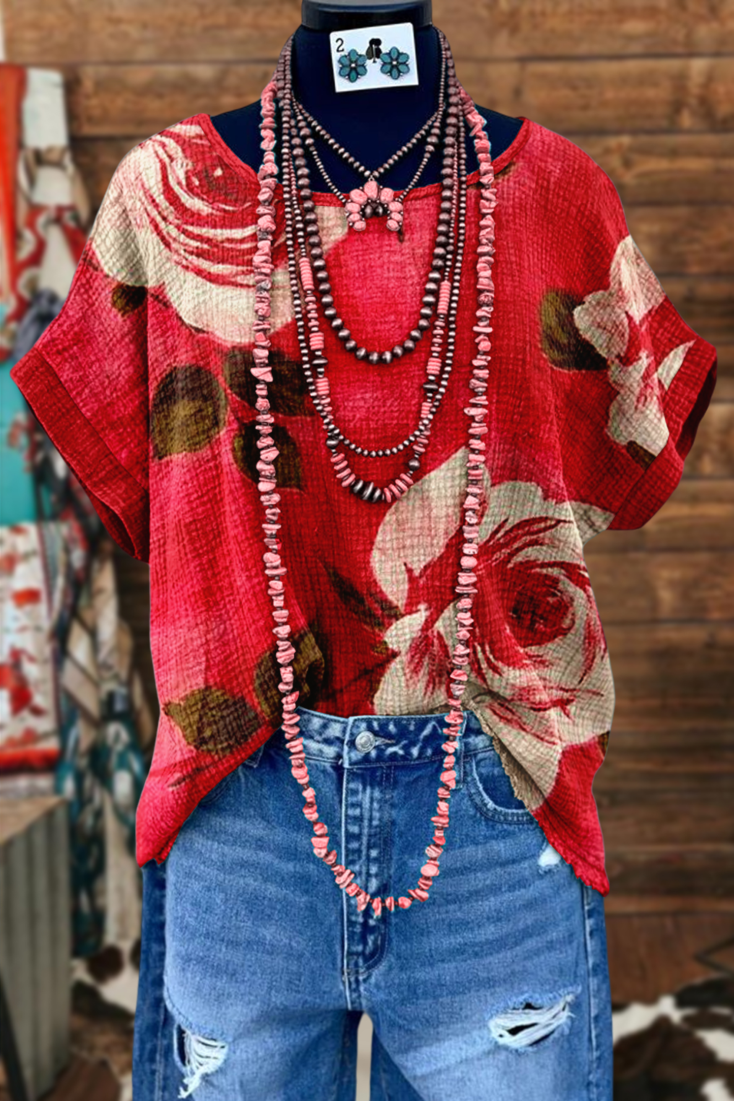 Stay on trend this season in our new casual, round neck t-shirt. We especially love the flower print fabric and think this piece will be a new favorite in your closet!