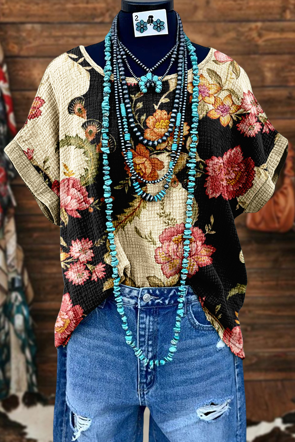 Pretty Floral Washed Dolman Sleeve T-shirt
