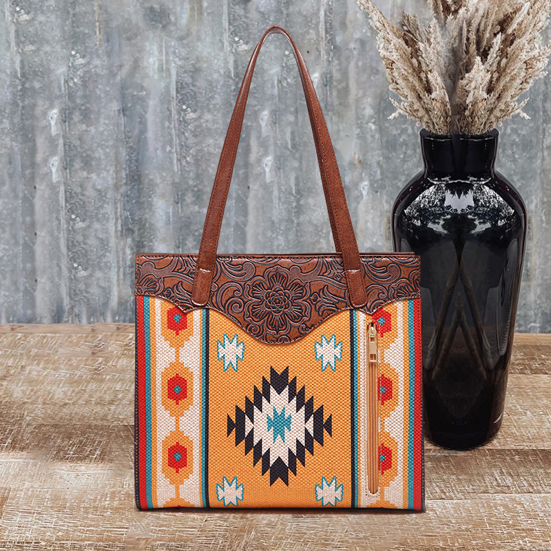 Stay on trend this season in our new casual bag. We especially love the graphic print fabric and think this piece will be a new favorite in your closet!