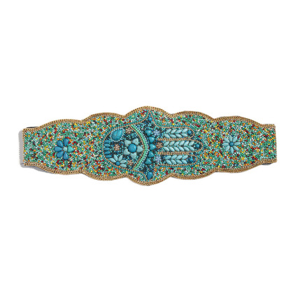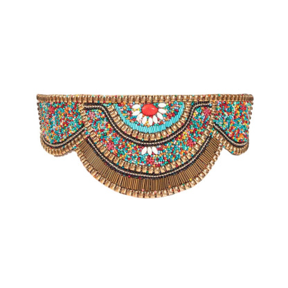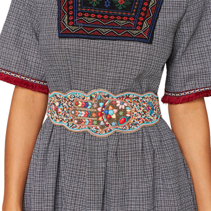 Stay on trend this season in our new colorful belt. We especially love the jewelled fabric and think this piece will be a new favorite in your closet!
