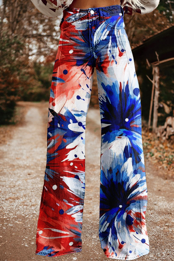 Classic USA Floral Print Wide Leg Pants