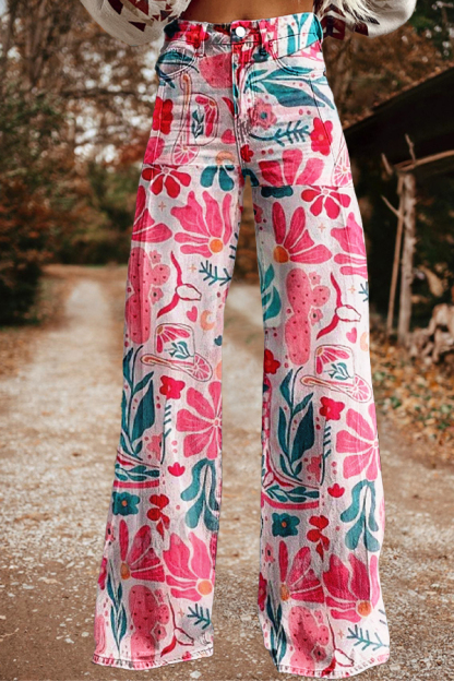 Western Botanical Print Wide Leg Pants
