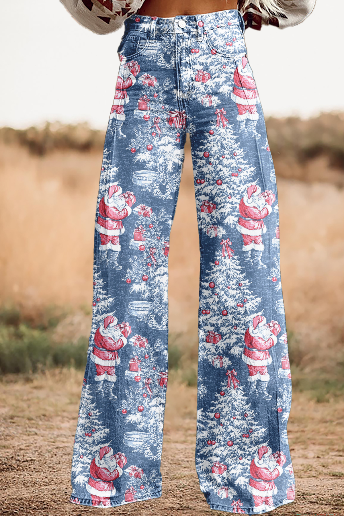 Christmas Santa Claus Christmas Tree Wide Leg Pants