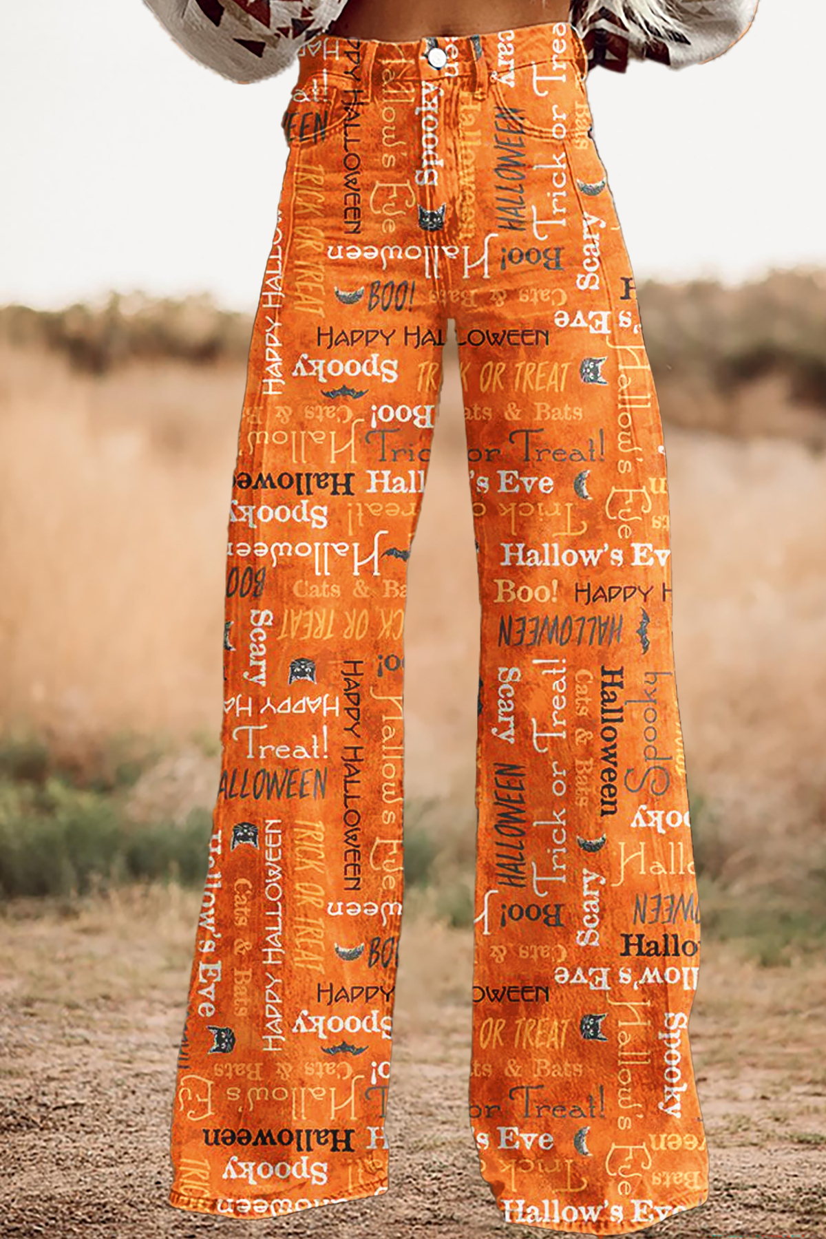 Classic Halloween Print Wide-Leg Pants