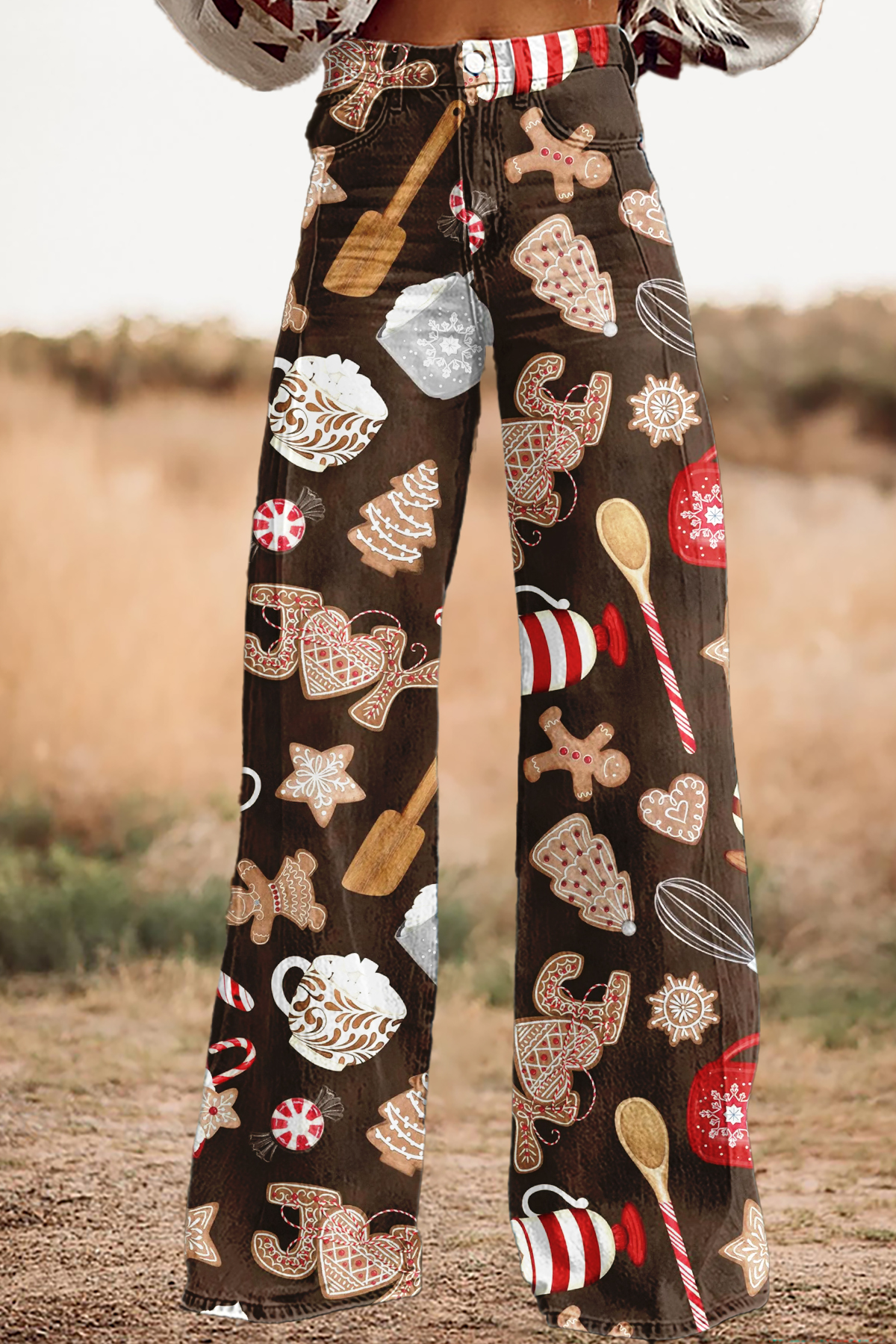 Cute Christmas Gingerbread Man Wide-Leg Pants