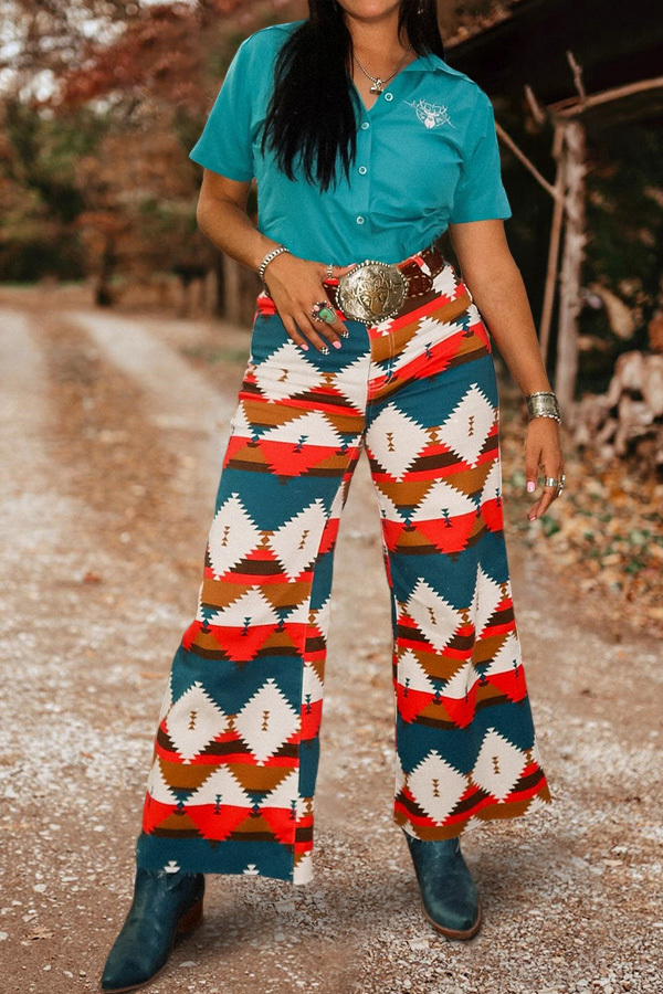 Stay on trend this season in our new casual, wide leg pants. We especially love the graphic print fabric and think this piece will be a new favorite in your closet!