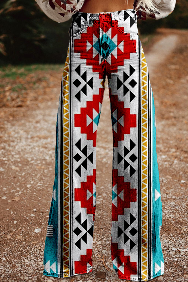 Turquoise Contrast Aztec Wide-Leg Pants