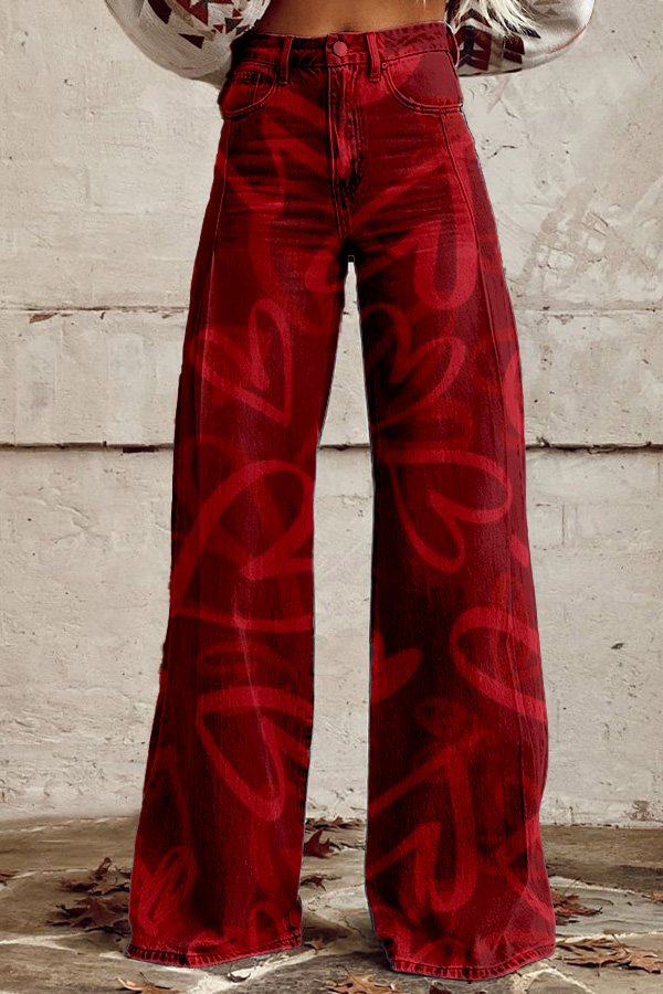 Valentine's Day Red Heart Wide Leg Pants