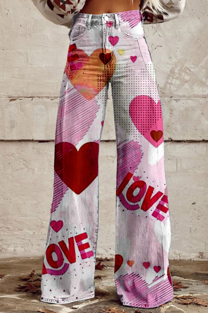 Valentine's Day Love Heart Wide Leg Pants