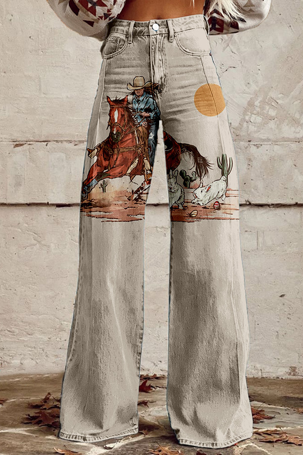 Easter Western Rodeo Bunny Wide Leg Pants
