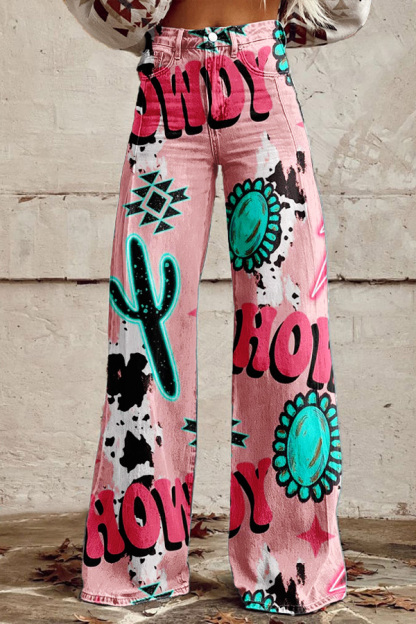 Western Howdy Turquoise Wide Leg Pants