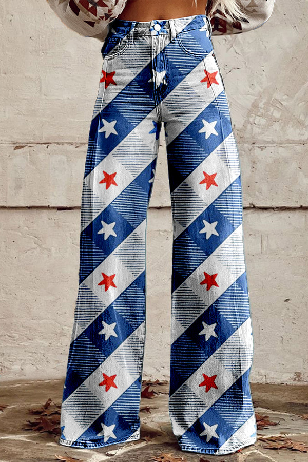 Star Plaid Wide Leg Pants