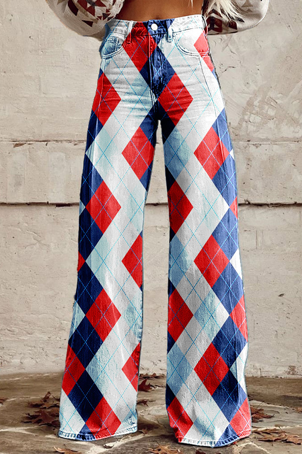 Contrast Striped Wide-Leg Pants