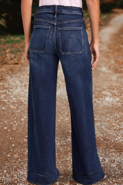 Stay on trend this season in our new casual, wide leg jeans. We especially love the solid color fabric and think this piece will be a new favorite in your closet!