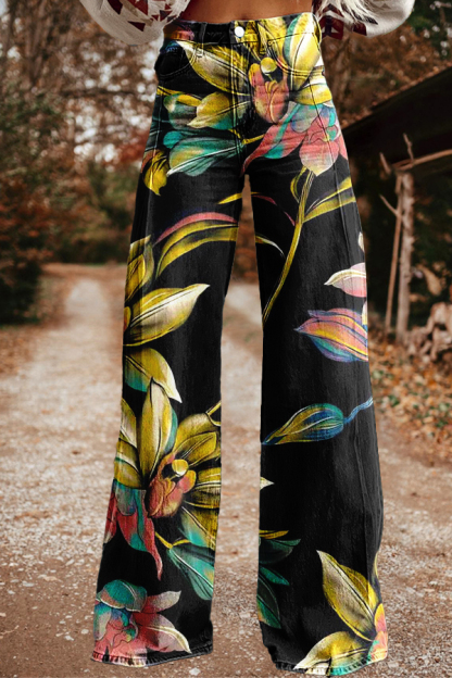 Unique Flower Print Wide Leg Pants