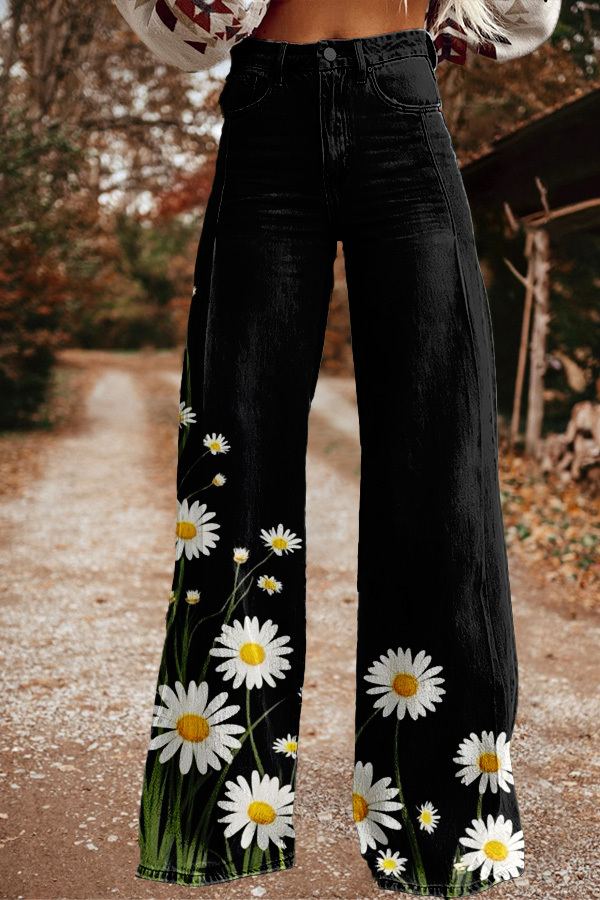 Vintage Western Floral Print Trousers
