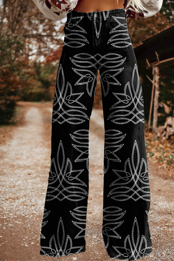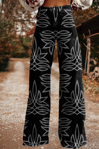 Vintage Boot Stitch Print Wide Leg Trousers